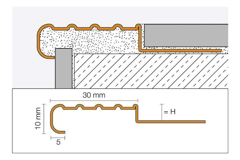Profilé en acier inoxydable V2A pour escaliers, présentant un relief non-glissant.