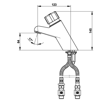 Accueil > Sanitaire > Collectivité > Robinetterie de collectivité > Robinetterie de lavabo collectif > Mitigeur monocommande PRESTO 4000 S avec bouton chromé, avec flexibles PEX et robinets d'arrêt droits