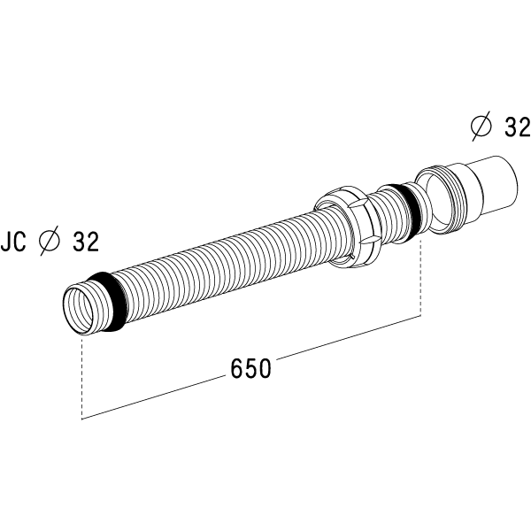 Raccord flexible vidhooflex pour lavabo, bidet et urinoir : tube de 650 mm, douille à coller pour raccordement à l'évacuation, livré avec 2 joints à lèvres.