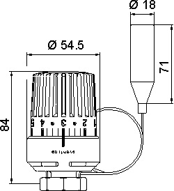 Bulbe liquide à distance. Tuyau capillaire 2 m long. Position zéro. Plage de température : 7-28°C