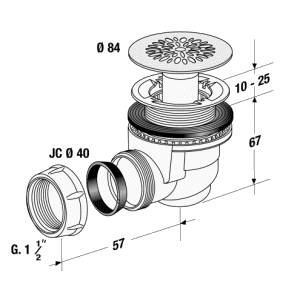 Accueil > Sanitaire > Douche > Vidage de douche > Bonde de vidage siphoïde pour receveur de douche grès, sortie horizontale ø 60 mm à grille inox, à visser ou à coller