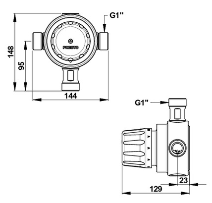 Accueil > Sanitaire > Collectivité > Robinetterie de collectivité > Robinetterie de douche collective > Régulateur thermostatique PRESTOTHERM 84 L, entrée et sortie G 1", plage de réglage de 35 à 55° C
