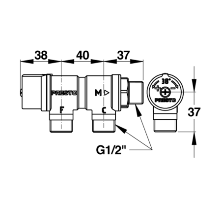 Accueil > Sanitaire > Collectivité > Robinetterie de collectivité > Robinetterie de douche collective > Régulateur thermostatique avec blocage de température interne, entrée et sortie en 1/2”, débit 43 l/mn à 3 ba