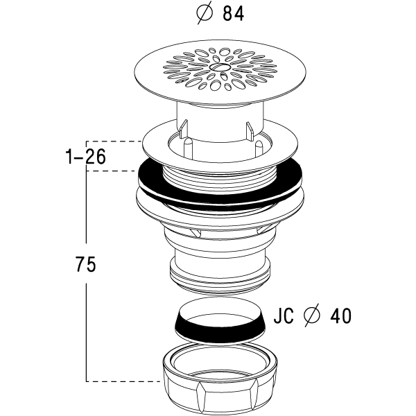 Bonde a grille pour receveur de douche de percage ø 60 mm - sortie verticale - à siphon amovible démontable - sortie J.C. ø 40 - sortie à visser ou à coller receveur douche BONDE DE DOUCHE 60 SORTIE VERTICALE 40 [8405909]