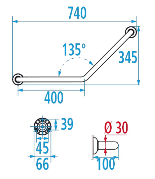 Accueil > Atouprix > Confort et accessibilité > Barre de maintien > Barre de relèvement coudée 135°, long. 740 mm, 400 x 400 mm, ø 30 mm