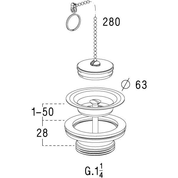 Bonde de vidage pour lavabo, bonde Laiton à bouchon-Chaînette