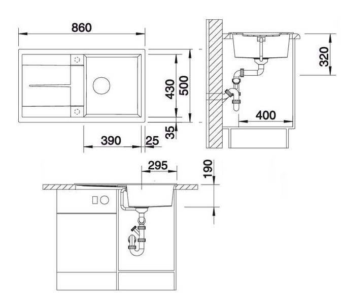 Evier synthèse à encastrer BLANCOMETRA 5S - 86x50 cm, 1 cuve