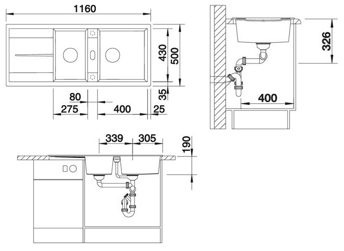 Evier synthèse à encastrer BLANCOMETRA 8S - 116x50 cm, 2 cuves