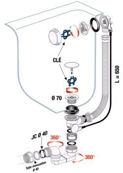 Accueil > Sanitaire > Bain > Vidage et siphon de baignoire > Vidage de baignoire à câble TURBOBAIN - Tube trop-plein télescopique pré-assemblé 370 - 560 mm