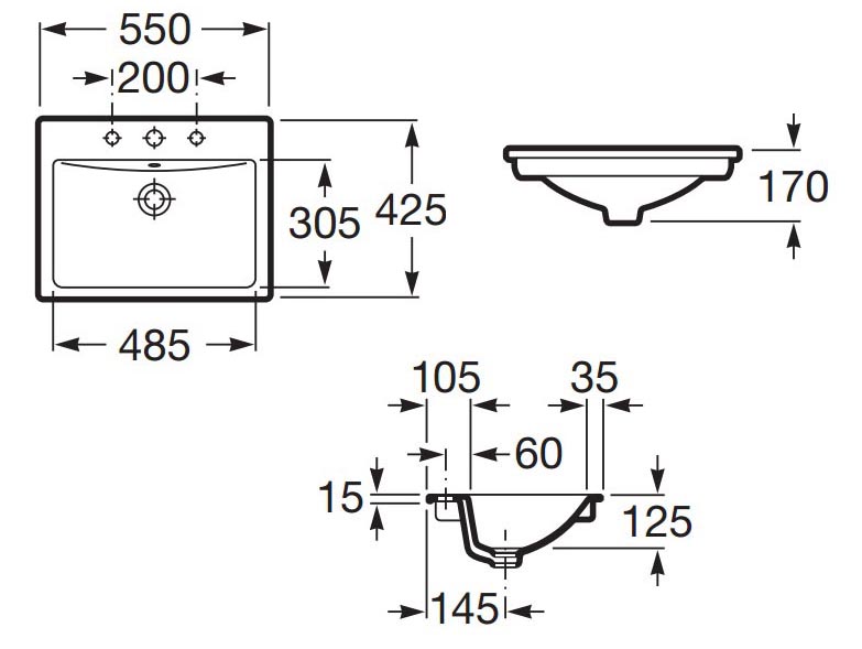 Vasque à encastrer par-dessus, percée pour la robinetterie