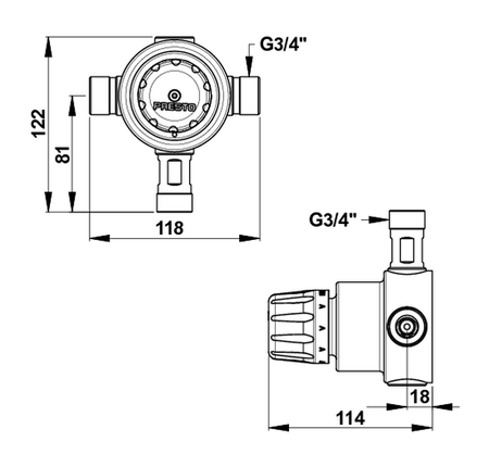 Mitigeur thermostatique PRESTOTHERM 55 L, entrée et sortie G 3/4", plage de réglage de 35 à 55°C