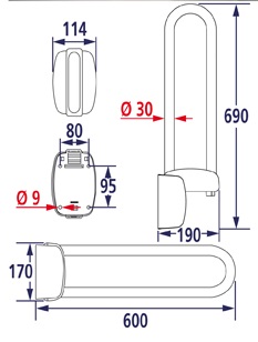 Barre relevable, long.600 mm