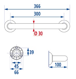 Accueil > Atouprix > Confort et accessibilité > Barre de maintien > Barre de relèvement droite 366 mm, ø 30 mm (entre axes 300 mm)