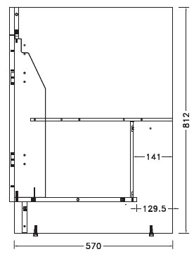 Mélaminé blanc 16mm. Dimensions : P586 x H822 mm. Dos amovible qui permet un accès permanent au vide-sanitaire. Vide-sanitaire standard : 141 mm. Assemblage : goujons excentriques (1/4 tour) pour montage rapide. Charnière : invisible à rappel automatique, ouverture 95°. Poignée : PVC. Mise à niveau : vérins métalliques, hauteur maxi de réglage 15 mm.