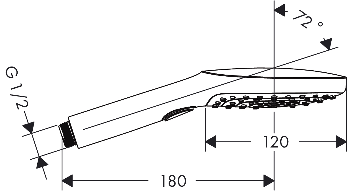 diamètre 120 mm, changement de jet via le bouton Select, RainAir (jet pluie enrichi d’air), jet Rain, jet massage, débit: 16 l/min sous 3 bars de pression