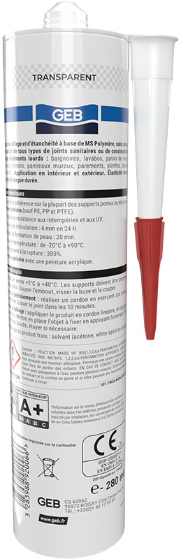 Colle-mastic neutre à prise rapide de type MS-Polymère/STP pour les travaux de collage et de jointoiement. Aspect lisse et brillant. Séchage rapide. Tous supports même humides.