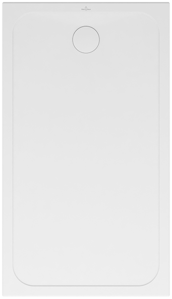 Receveur extra-plat à poser ou à encastrer, antidérapant. Bonde centrée sur le petit côté.