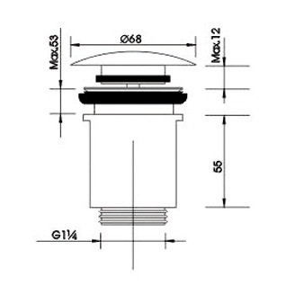 Vidage lavabo clic-clac rond sans trop plein finition chromé. Épaisseur de serrage : 10 mm mini - 70 mm maxi. Uniquement pour vasque ou bol.