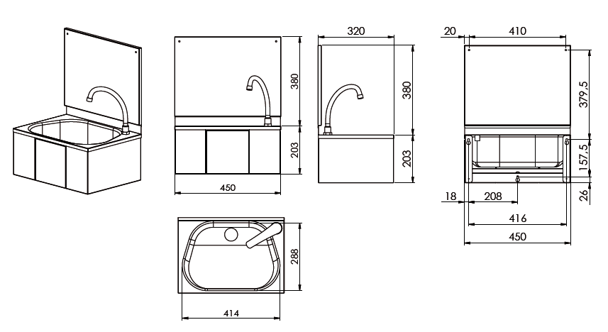 | SGLA043Z01 | Lave-mains en inox 18/10, mitigeur à commande électronique ou commande par volet | 729,29 € | ![]() |