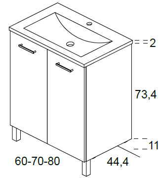 Meuble 2 portes + Plan céramique - Pieds inclus SAPHIR 80cm