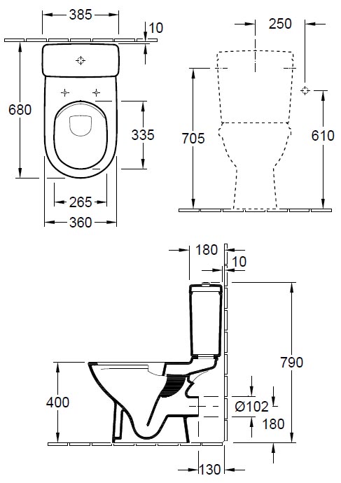 Pack comprenant : 1 cuvette sortie horizontale avec système Direct Flush + 1 réservoir avec mécanisme à touche ECO FLUSH + 1 abattant à charnières Quick Release et Soft Closing + fixations incluses en céramique blanc