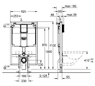 Hauteur 1,13 m (sans plaque de commande). Largeur 0,62 m. Pour les espaces petits ou étroits. Châssis en acier finition époxy . Mécanisme à déclenchement pneumatique. Réservoir 80 mm, 6/9l - Avec trappe de visite